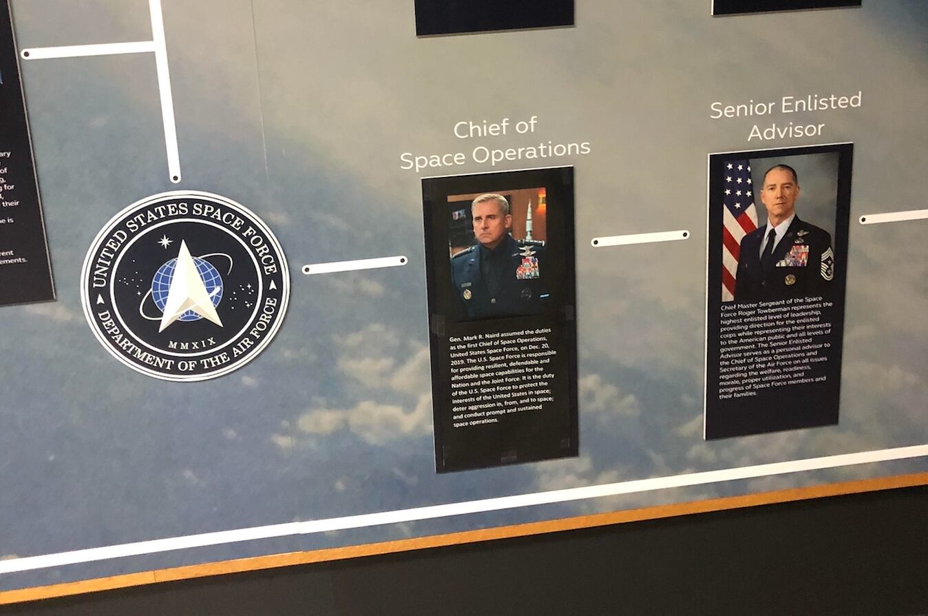 Someone taped Steve Carell’s picture over Space Force’s top officer at the USAF museumExactly how long Carell’s image has blanketed Raymond’s is unknown.