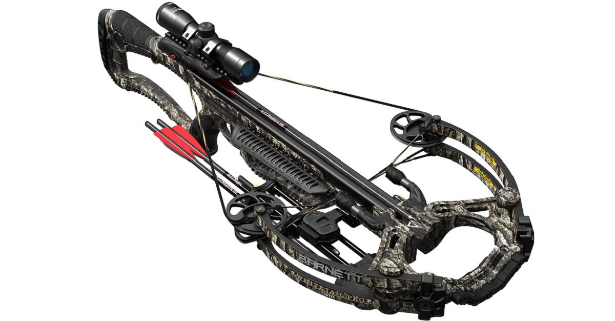 What: This crossbow has a revolutionary design with no cams or cables — just recurve limbs and a string. With a 285-pound draw weight, you’ll have to use the built-in, quiet cranking device to cock it. It only takes 12 pounds of force to cock the bow. The stock is easily adjusted from 12 to 15 inches in length. Comb height is also adjustable. It includes a frictionless two-stage match grade trigger, a Tact Zone Scope with 30mm rings, a 10-point sound deadening system, and a four-arrow quiver with four quill arrows and 100-grain field points.