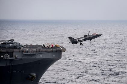 An F-35B Lightning II aircraft takes off from the flight deck of the amphibious assault ship USS Wasp (LHD 1) on Feb. 9, 2019, in the Philippine Sea. (Mass Communication Specialist 2nd Class Sarah Myers/Navy)