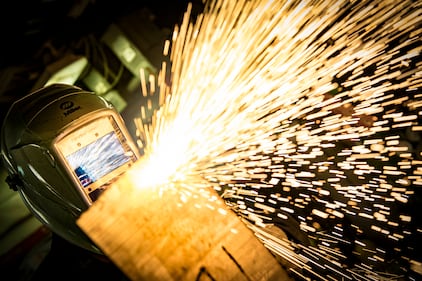 A Navy hull maintenance technician uses a plasma cutter on Feb. 20, 2019, aboard the Arleigh Burke-class guided-missile destroyer USS Donald Cook (DDG 75) in the Black Sea. (Mass Communication Specialist 2nd Class Ford Williams/Navy)