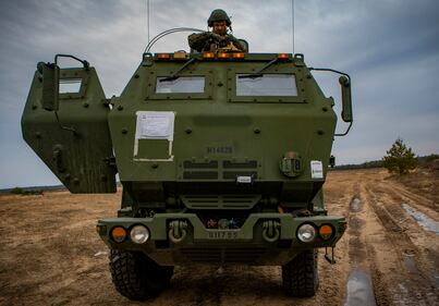 U.S. Marines prepare to load rockets to a High Mobility Artillery Rocket System on March 7, 2019, during live-fire training at Adazi Training Area, Latvia. (Sgt. Andy O. Martinez/Marine Corps)