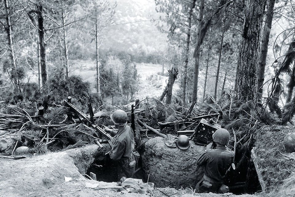 Shells bursting in the crowns of 100-foot fir trees and mines erupting from the forest floor made life hellish for the American soldiers. A tree burst would send shrapnel and timber raining down, and foxholes proved scant shelter. Many GIs fell victim to their own artillery salvos.